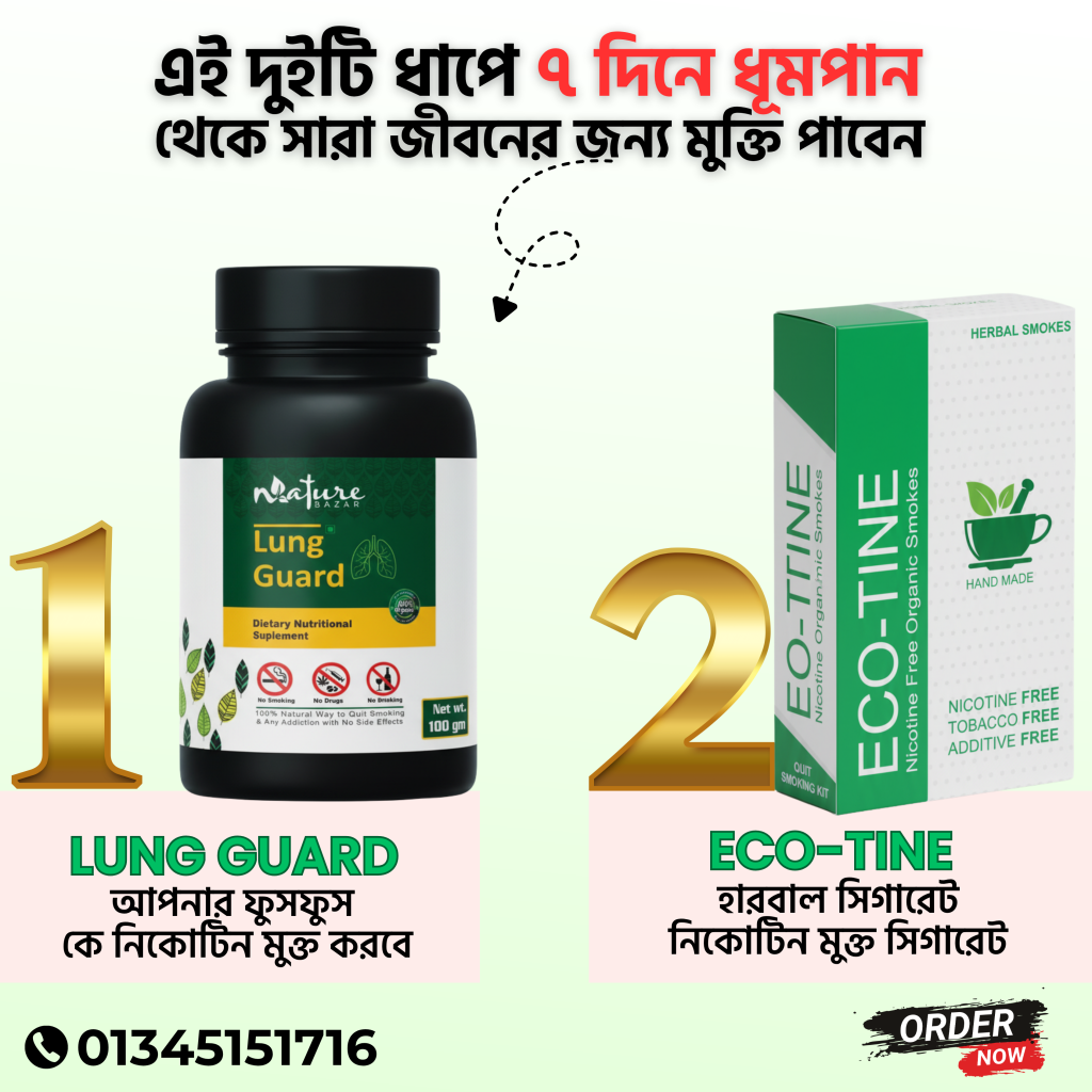 Lung Guard আপনার ফুসফুসকে ডিটক্স করবে। ধীরগ দিন ধূমপানের ফলে ফুসফুসে যে নিকোটিন ও টক্সিন জমা হয়ে আছে এটি এগুলো বের করে দেবে, ফুসফুসকে করবে সতেজ ও সুস্থ।